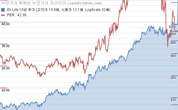 - 엘리 릴리의 포스팅일 기준 PER은 42.36이다.