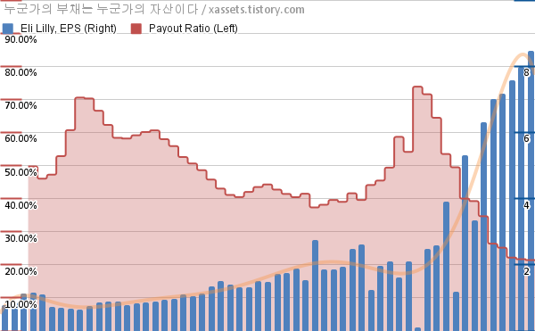 엘리 릴리 EPS 성장률, 배당성향 차트 (2012년~2026년)