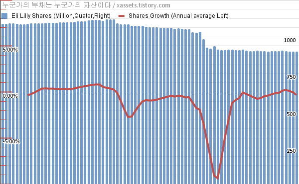 - 지난 1년 동안 엘리 릴리는 평균 0.33%의 자사주를 매입-소각했다.