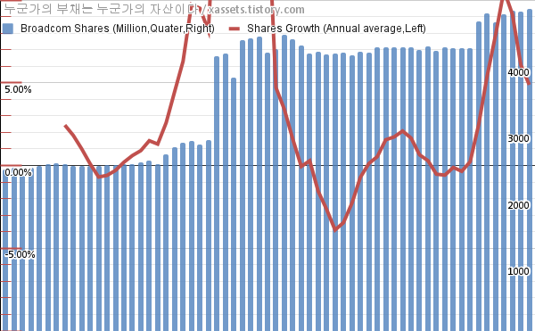 - 지난 1년 동안 브로드컴은 주식수가 약 4.87% 증가했다.