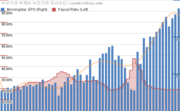모닝스타 EPS 성장률, 배당성향 차트 (2012년~2026년)