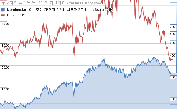 - 모닝스타의 포스팅일 기준 PER은 22.61이다.