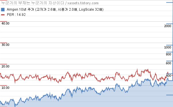 - 암젠의 포스팅일 기준 PER은 14.92이다.