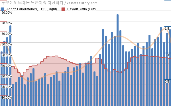 애벗 래버러토리 EPS 성장률, 배당성향 차트 (2012년~2026년)