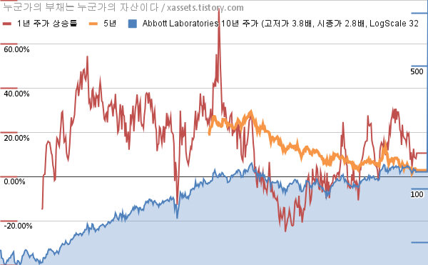 - 포스팅일 기준, 애벗 래버러토리의 1, 3, 5, 10년 연평균 주가상승률은 10.65%, 5.48%, 2.86%, 10.77%이다.