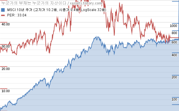 - MSCI의 포스팅일 기준 PER은 33.04이다.