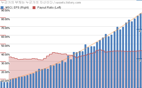MSCI EPS 성장률, 배당성향 차트 (2014년~2026년)