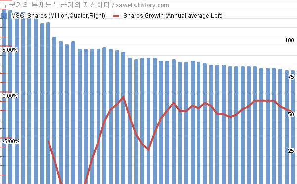 - 지난 1년 동안 MSCI는 평균 2.20%의 자사주를 매입-소각했다.