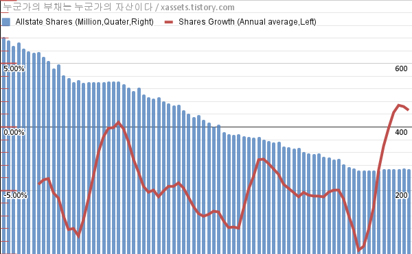 - 지난 1년 동안 올스테이트는 주식수가 약 0.56% 증가했다.