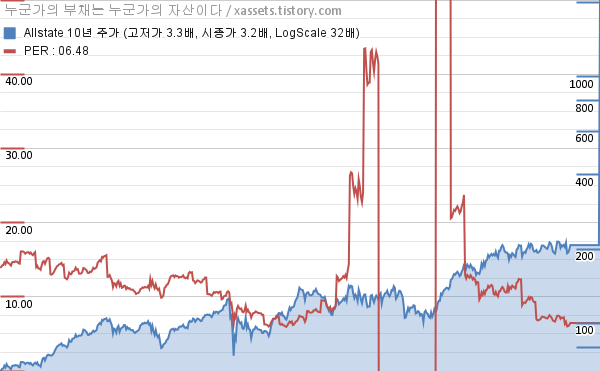 올스테이트 PER 차트 (2016년~2026년)