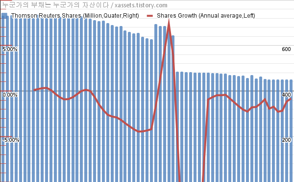 - 지난 1년 동안 톰슨 로이터는 평균 0.83%의 자사주를 매입-소각했다.