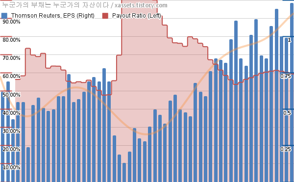 톰슨 로이터 EPS 성장률, 배당성향 차트 (2012년~2026년)