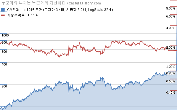 시카고 거래소 그룹 배당수익률 및 주가 상승률 차트 (2016년~2026년)