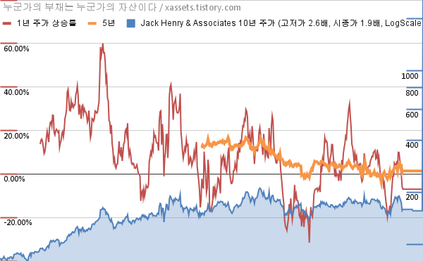 - 잭 헨리 앤 어소시에이츠의 10년 평균 MDD는 -8.85%고, 52주 최저가 대비 평균 상승률은 19.38%다.