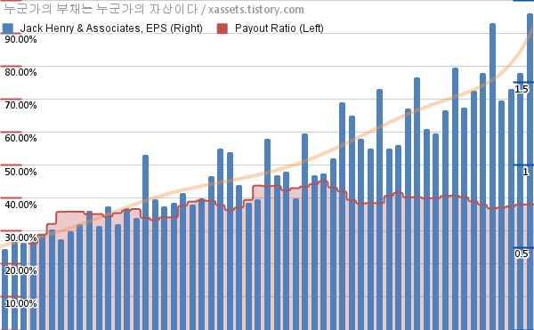 잭 헨리 앤 어소시에이츠 EPS 성장률, 배당성향 차트 (2012년~2026년)