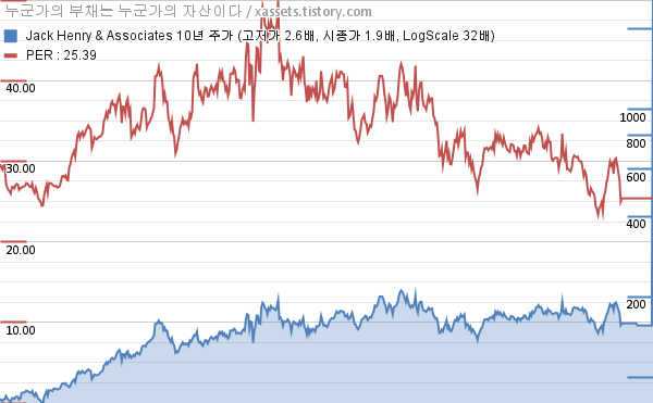 - 잭 헨리 앤 어소시에이츠의 포스팅일 기준 PER은 25.39이다.