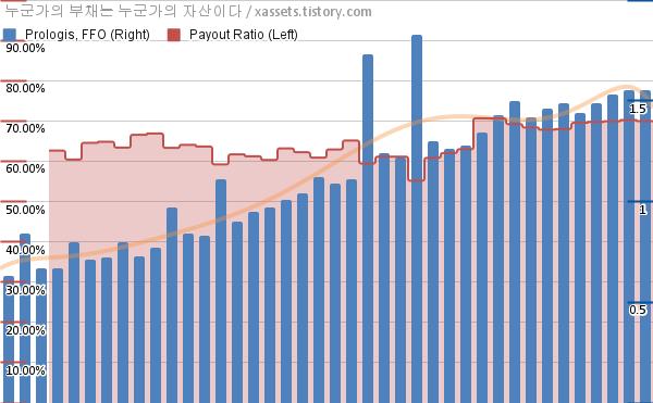프롤로지스 FFO 성장률, 배당성향 차트 (2017년~2026년)