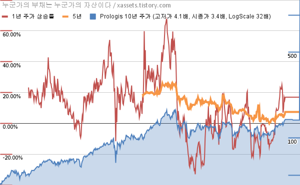 - 포스팅일 기준, 프롤로지스의 1, 3, 5, 10년 연평균 주가상승률은 16.98%, 5.25%, 7.39%, 13.05%이다.