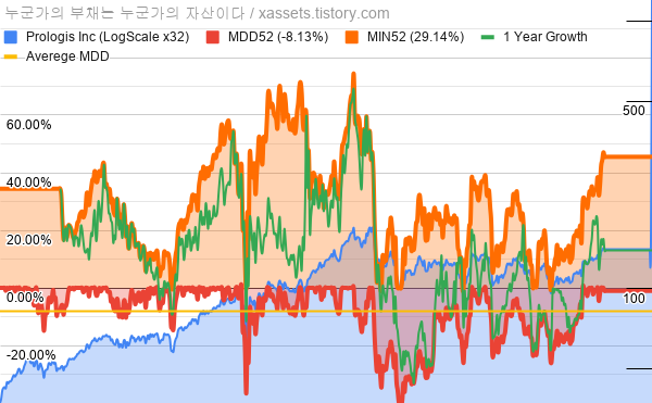 - 프롤로지스의 10년 평균 MDD는 -8.13%고, 52주 최저가 대비 평균 상승률은 29.14%다.