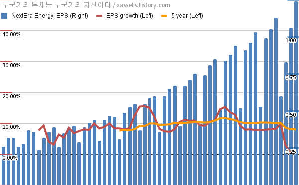 - 포스팅일 기준, 넥스테라 에너지의 1, 5년 연평균 EPS 성장률은 0.81%, 8.07%이다.