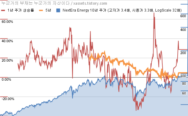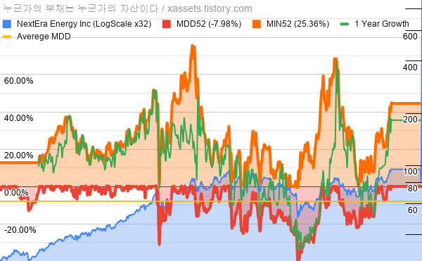 - 넥스테라 에너지의 10년 평균 MDD는 -7.98%고, 52주 최저가 대비 평균 상승률은 25.36%다.
