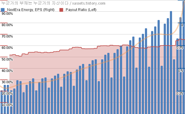 넥스테라 에너지 EPS 성장률, 배당성향 차트 (2012년~2026년)