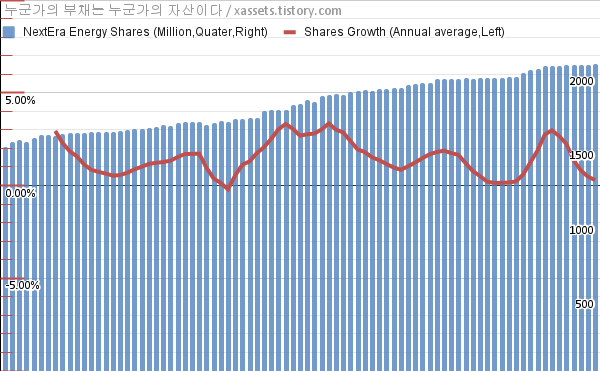 - 지난 1년 동안 넥스테라 에너지는 주식수가 약 0.29% 증가했다.