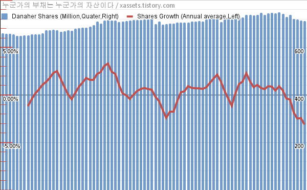 - 지난 1년 동안 다나허는 평균 3.11%의 자사주를 매입-소각했다.