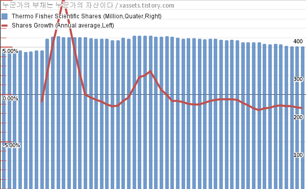 - 지난 1년 동안 써모피셔 사이언티픽은 평균 1.43%의 자사주를 매입-소각했다.
