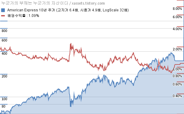 아메리칸 익스프레스 배당수익률 및 주가 상승률 차트 (2016년~2026년)