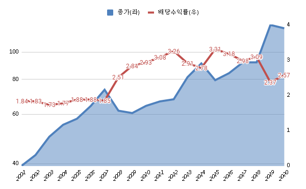 저상장 분야에서 자리잡은 대부분의 기업이 그렇듯, 배당수익률이 올라가는 추세다. 큰 변동은 없어 보인다.
