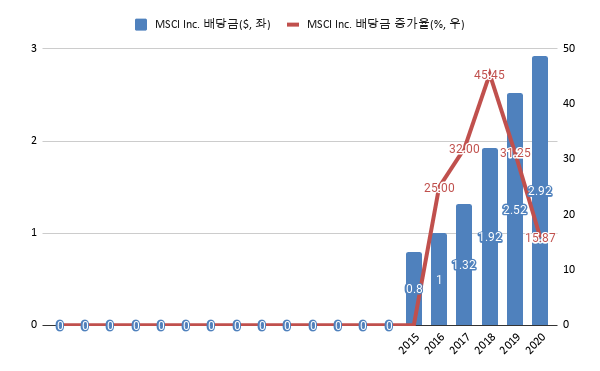 MSCI 배당금 & 배당성장률 차트 (2015년~2020년)