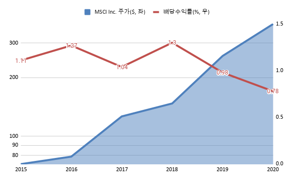 MSCI 배당수익률 & 주가 차트 (2015년~2020년)