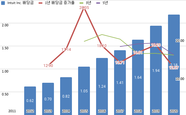 인튜이트 2020년 배당금 증가 내역