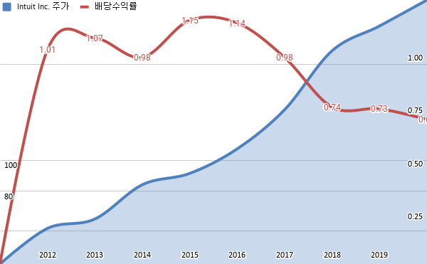 인튜이트 배당수익률 & 주가 차트 (2012년~2020년)