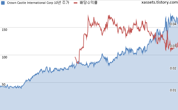 크라운캐슬 인터내셔널 배당수익률 및 주가 차트 (2014년~2020년)