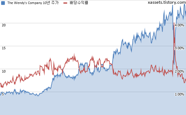 웬디스 배당수익률 및 주가 차트 (2003년~2020년)
