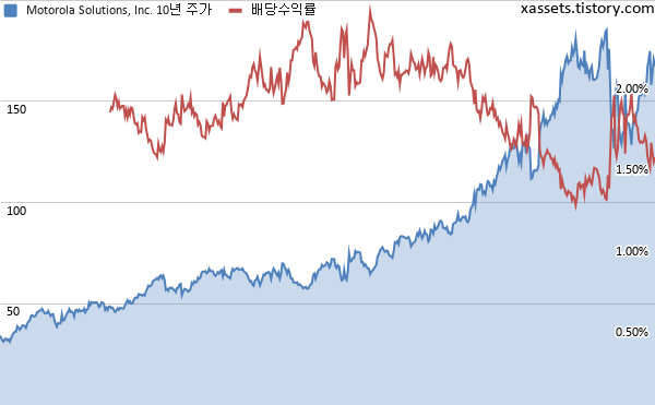 모토로라 솔루션 배당수익률 및 주가 차트 (2011년~2021년)