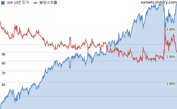 - ADP는 1974년부터 47년 연속으로 배당금을 증액하고 있다.