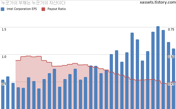 인텔 EPS 및 배당성향 차트 (2012년~2020년)