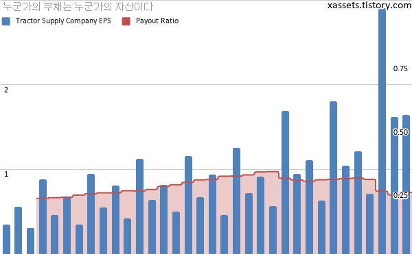 트랙터 서플라이 EPS 및 배당성향 차트 (2012년~2021년)