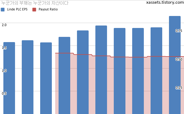 - 린데는 2019년부터 2년 연속으로 배당금을 증액하고 있다. 합병 이후 기준이다.