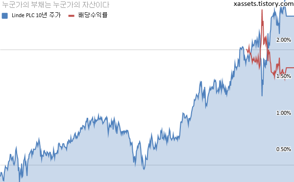 린데 배당수익률 및 주가 차트 (2010년~2021년)