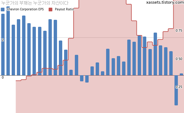 셰브런 EPS 및 배당성향 차트 (2012년~2020년)