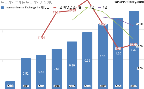 인터컨티넨털 익스체인지 2021년 배당금 증가 내역