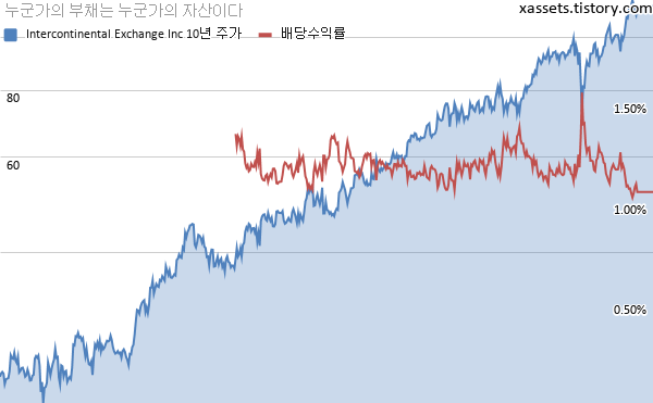 인터컨티넨털 익스체인지 배당수익률 및 주가 차트 (2010년~2021년)