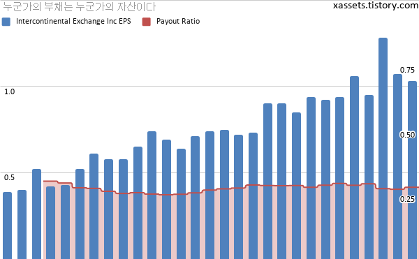 인터컨티넨털 익스체인지 EPS 및 배당성향 차트 (2013년~2020년)
