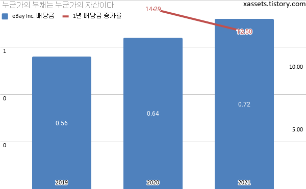 이베이 2021년 배당금 증가 내역