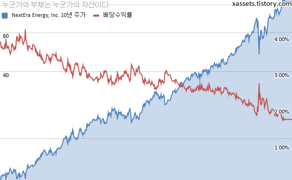 넥스테라 에너지 배당수익률 및 주가 차트 (2010년~2021년)