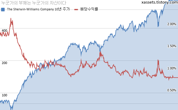 셔윈 윌리엄즈 배당수익률 및 주가 차트 (2010년~2021년)